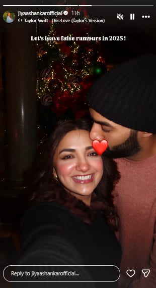 On Tuesday night, Jiya shared a romantic-looking picture on Instagram featuring a mystery man, who was seen kissing her on the forehead. Alongside the photo, she addressed the circulating rumours, writing, “Let’s leave false rumours in 2025!” The post made it clear that she is not engaged to Abhishek Malhan, quelling widespread speculation.