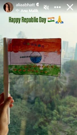 In a cute gesture, Alia Bhatt shared a picture of the national flag, prepared by her daughter Raha and sent her greetings.