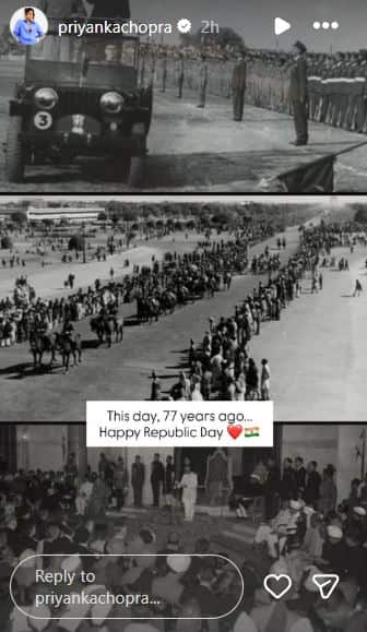 Priyanka Chopra Jonas also basked in the patriotic spirit, sharing an old picture and writing, “This day, 77 years ago…Happy Republic Day.”